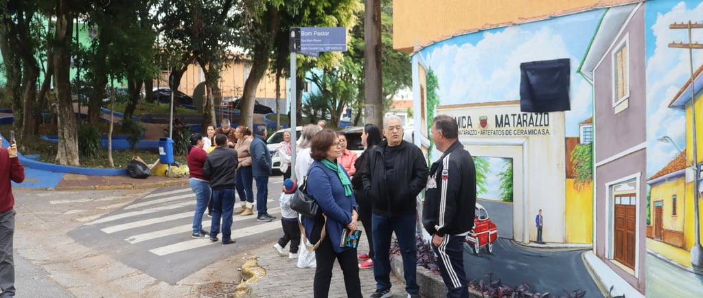 Localizado na esquina da Rua Bom Pastor com a Rua Giovani De Nardi, no bairro Oswaldo Cruz, esse mural celebra a rica história de nossa cidade. Com essa obra de arte, eternizamos alguns dos monumentos históricos mais queridos de São Caetano, incluindo a Igreja Matriz Velha, as Indústrias Reunidas Francisco Matarazzo, a Papelaria Ao Carioca, o Instituto de Ensino de São Caetano do Sul e a Paróquia Nossa Senhora da Candelária.