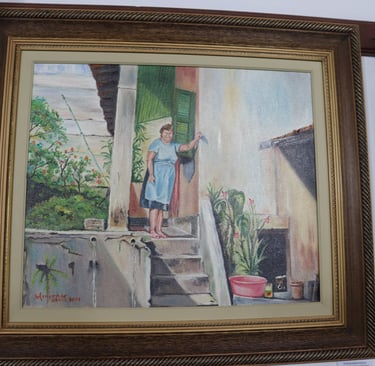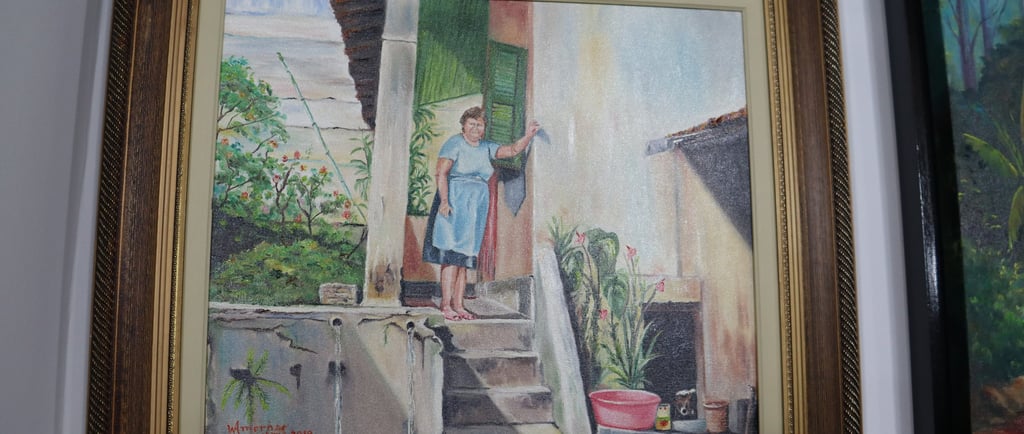 Na pintura em tela, procurei capturar a beleza natural do quintal e, ao mesmo tempo, incorporar elementos que representassem a personalidade e as paixões da minha sogra. O processo criativo envolveu a escolha de cores, técnicas e detalhes que fizessem justiça à sua importância em nossas vidas.